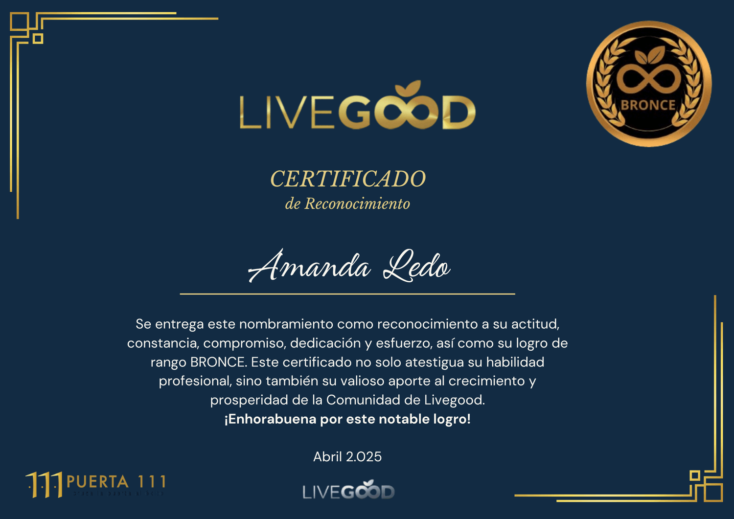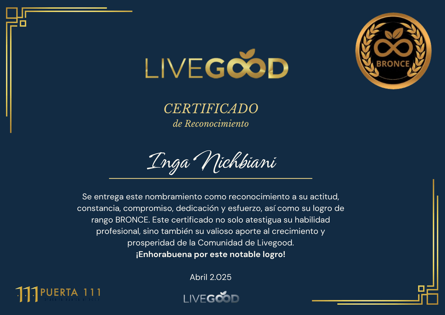 Los productos de LiveGood están respaldados por certificaciones de pureza, ingredientes naturales y procesos éticos (solicita las certificaciones, están en la página de pre registro).